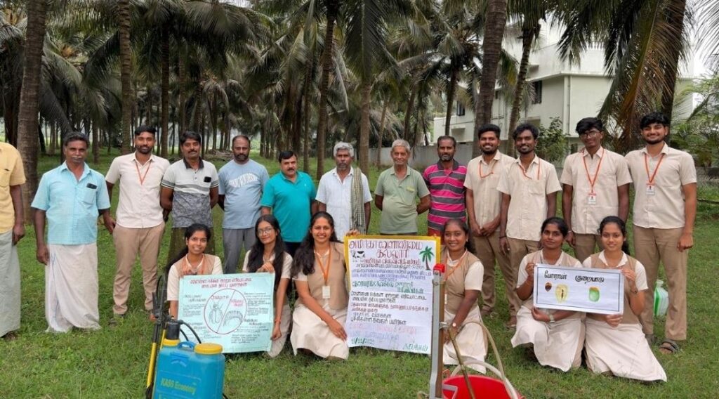 ഗ്രാമത്തിൽ നേരിടുന്ന പ്രധാന പ്രശ്നമായ തെങ്ങിലെ വെള്ളി-ഈച്ച പ്രശ്നം പരിഹരിക്കാനായി വിവിധ കെമിക്കൽ, ഓർഗാനിക് മാർഗ്ഗനിർദ്ദേശങ്ങൾ കർഷകരുമായി പങ്കുവെയ്ക്കാൻ വിദ്യാർത്ഥികൾക്ക് കഴിഞ്ഞു. അതിനു പുറമെ ഏതെല്ലാം വിളകളാണ് ഈ പ്രാണികളെ ട്രാപ് ചെയ്യുന്നതും അവയെ എങ്ങനെ വളർത്താമെന്നും ചർച്ച ചെയ്യാൻ സാധിച്ചു. തേങ്ങകൾക്ക്